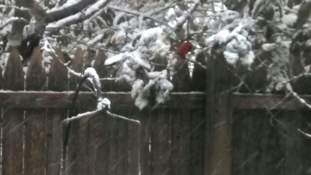 Cardinal perched ready to eat